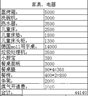 电器家具预算,这个就不急了,慢慢一件件补充