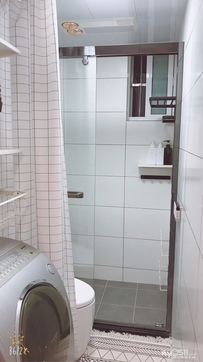 卫生间装上了浴帘和地毯,洗衣机和小伙伴们很不搭呀!主卧的书柜也到位了,和老家搬来的床也能凑cp。