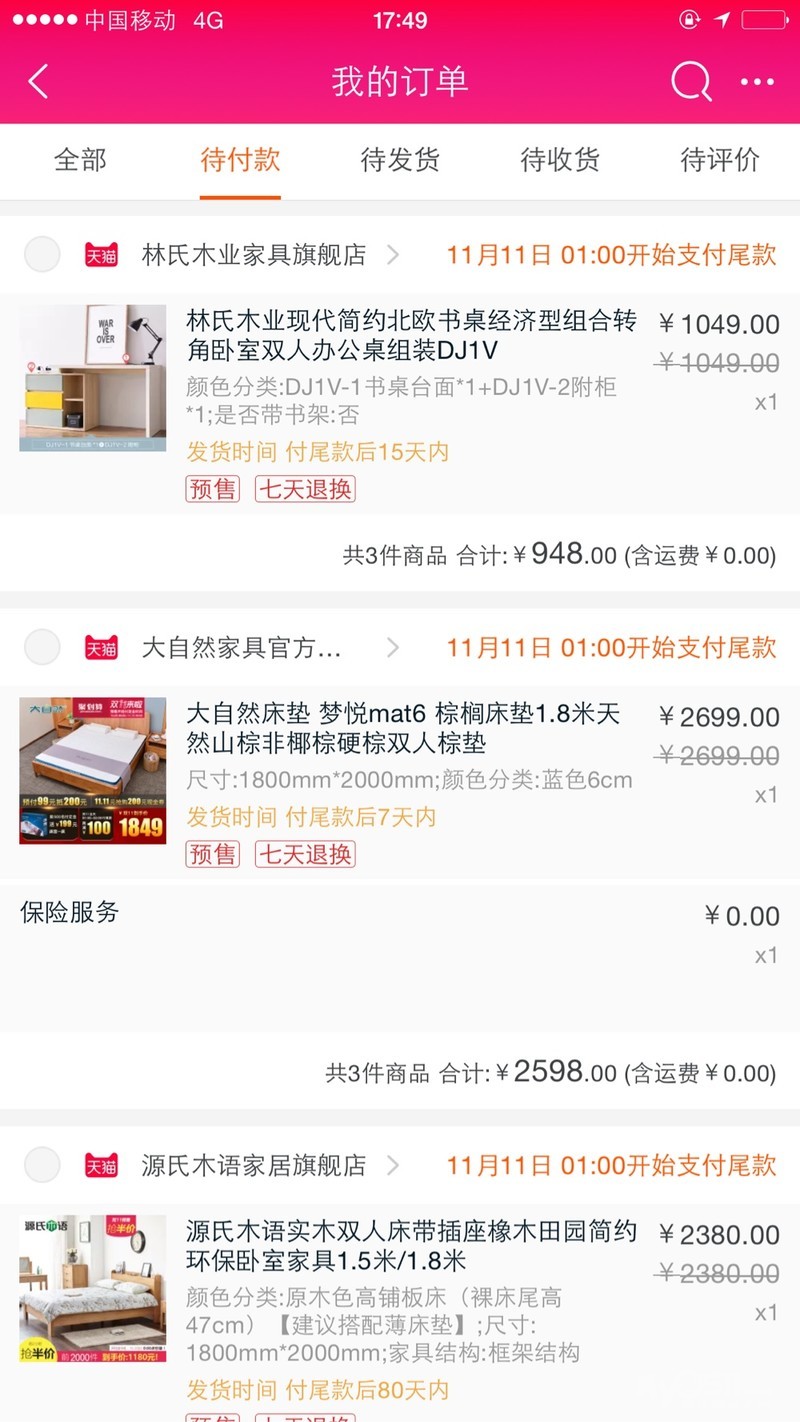 今年双十一开始搞提前预售,力度还是蛮大的,床抢到了半价,希望质量也杠杠的