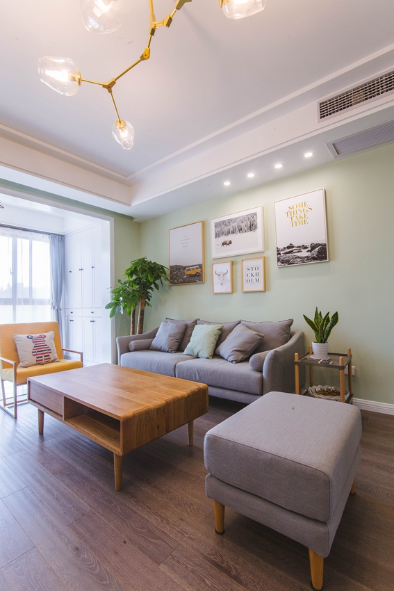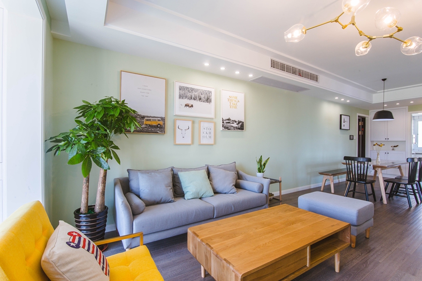 显得白绿呼应,也让客厅的其他浅色系的更加自然。