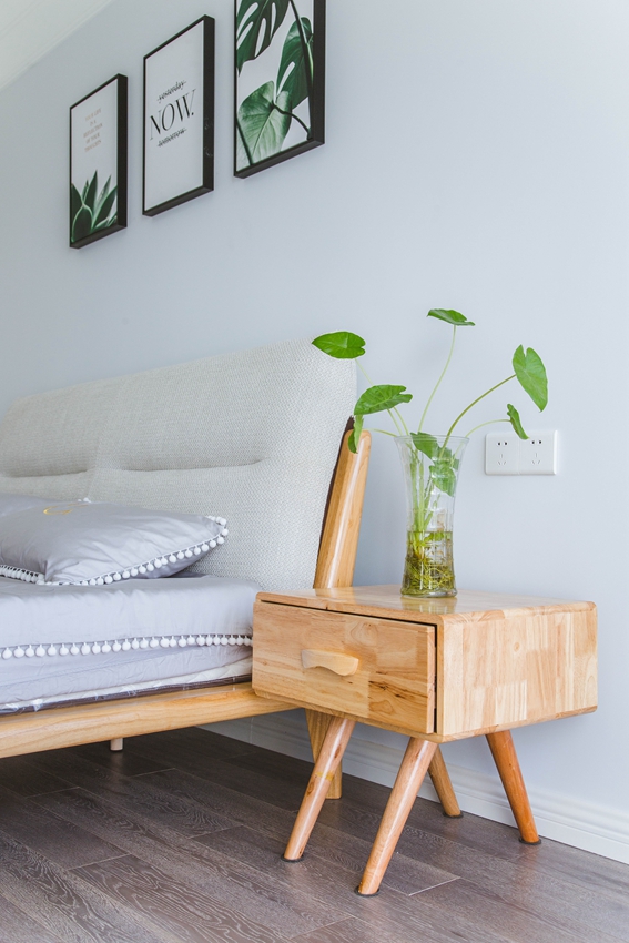 充满艺术感的原木色的床,清爽又不失温暖。