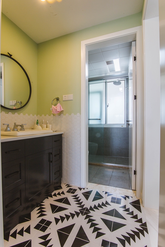 与时尚感,点缀花色的地砖,装饰营造轻松快乐的自然氛围。