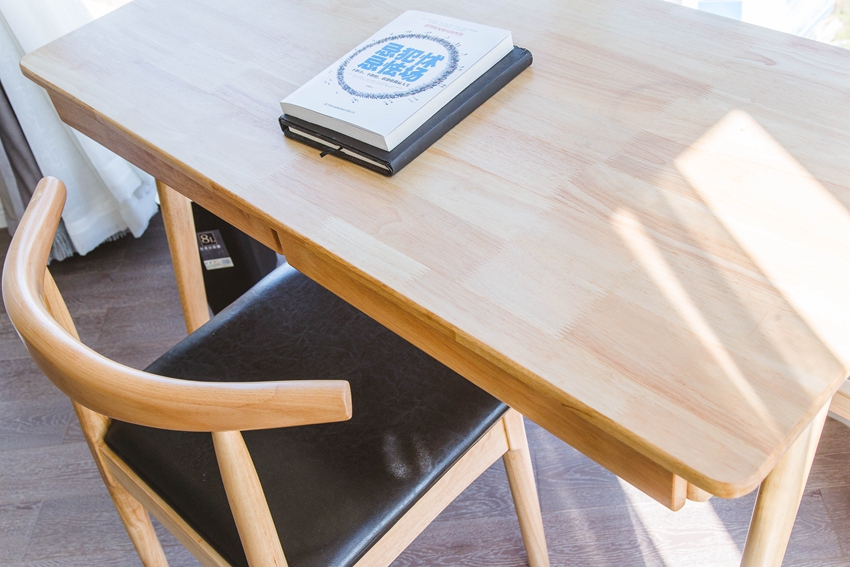 似乎只有白色和淡色的家装有点寂寞,恰到好处的原木色书桌,来的