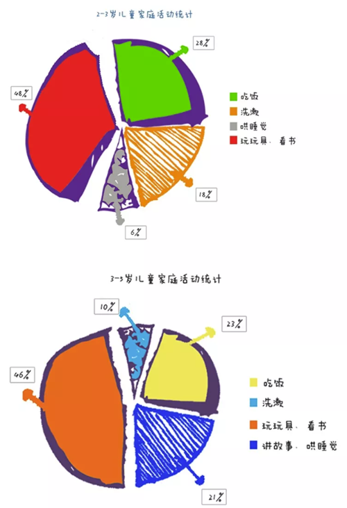 可以看出,2-5岁的孩子在家里的主要活动是玩玩具、看书。