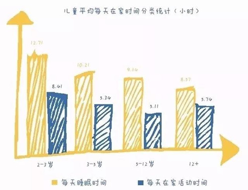 随着孩子年龄的增长,在家待的时间越来越短,其中大部分还是睡眠时间,活动时间只有5个小时左右。