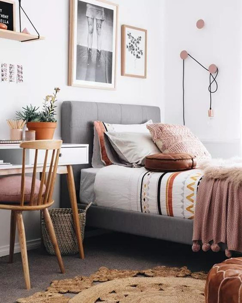 墙壁可以选用中性色或是饱和度较低的颜色,比如莫兰迪配色,再辅以色彩丰富的软装点缀,