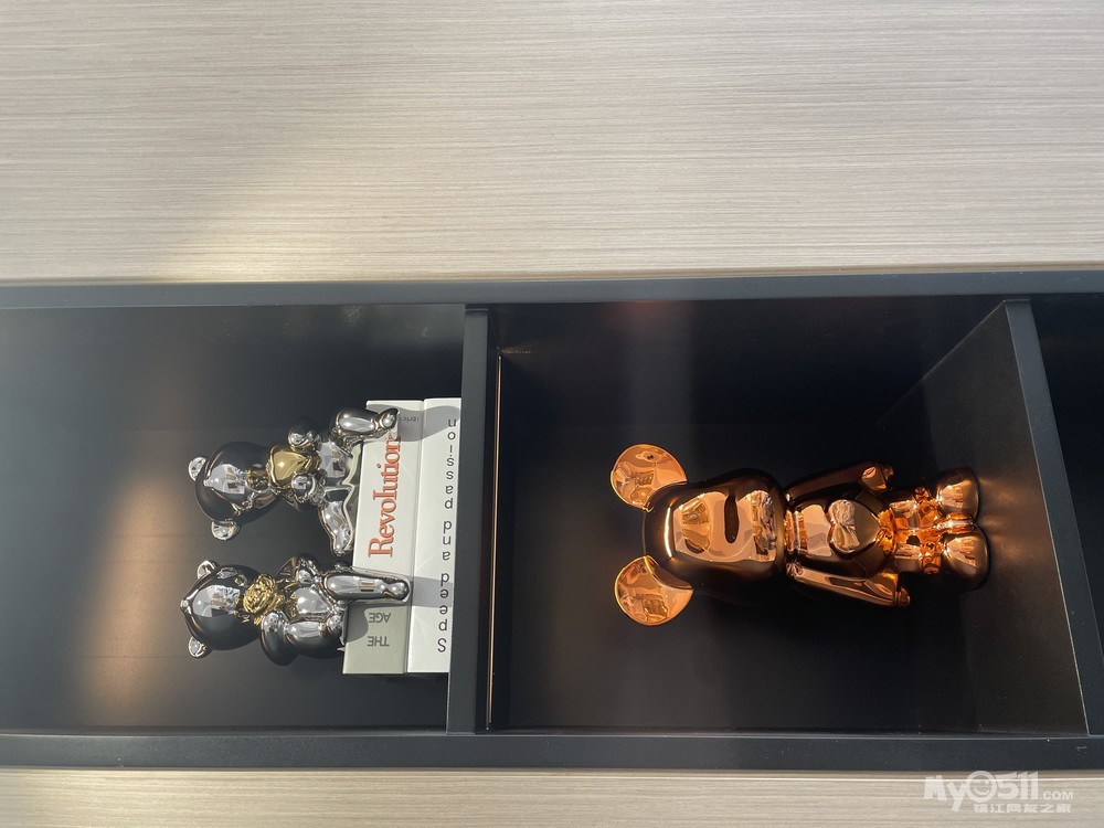 背景墙下端采用M77特有的金属漆板设计的两个弧角,包括我们旁边的装饰柜上的圆弧立柱,让整个空间的设计重点“圆”和“弧”相相呼应。