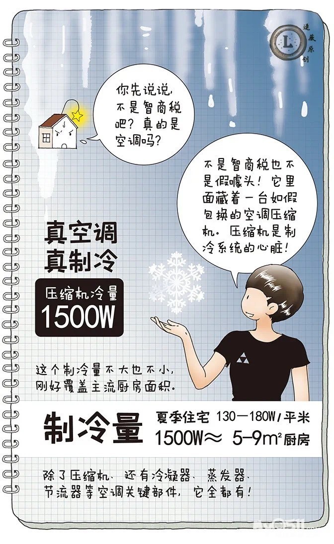 空调也源源不断输出冷气,如考虑厨房兼用,选大一档功率即可。当然厨房这边达不到空调设定的温度,但可以衣冠齐整地炒菜