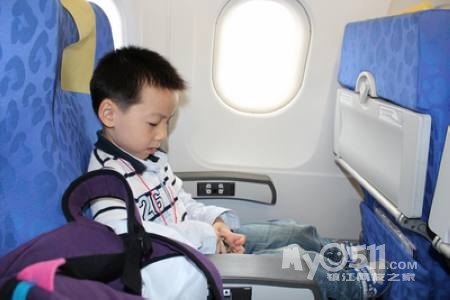 第一次登上飞机,扣上安全带