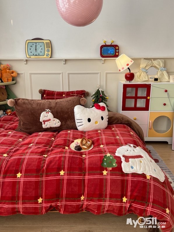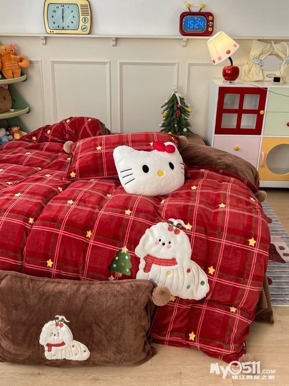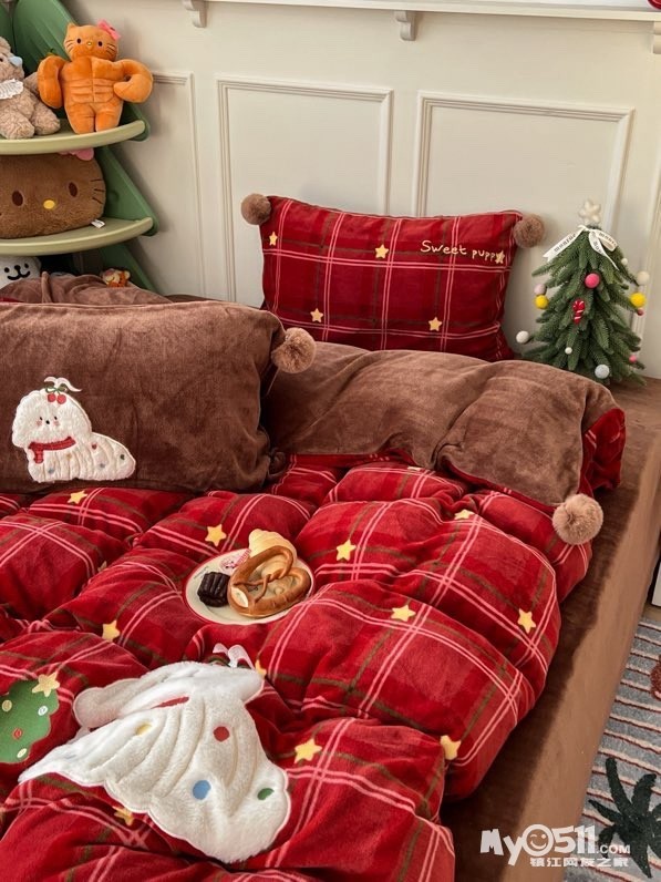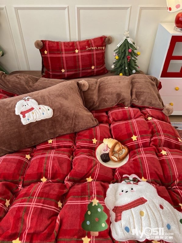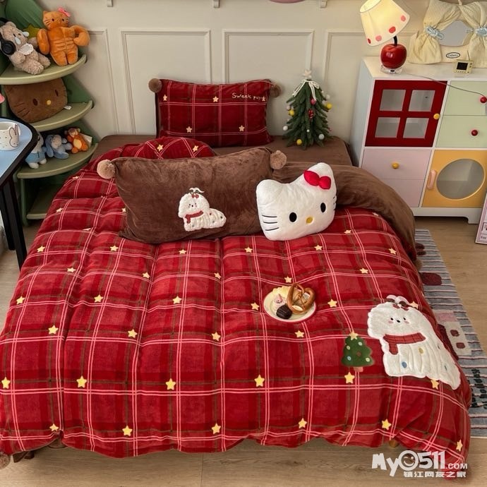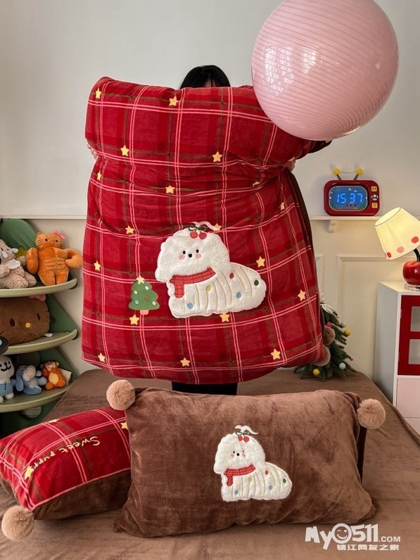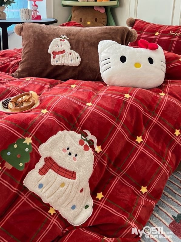 贴布刺绣牛奶绒套件球球款
