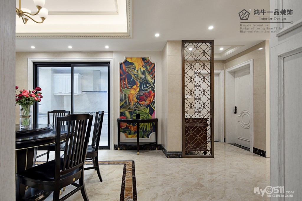 其实这个案子从我们前期测量,定方案到签合同进行土建,一直到水电结束,我们的设计以及选购的主材的方向一直都是按照新中式进行的,