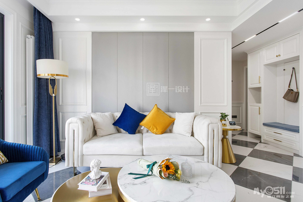 业主喜欢蓝色,同时钟情于轻奢的小美式,所以房屋的整体空间效果,风格色系也就由此入手。