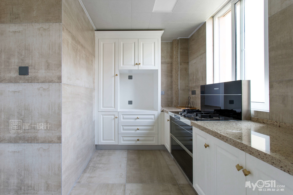 2、厨房区域:将露天空间吸纳进厨房,不仅增加厨房的使用台面,还可以增设一组电器柜;