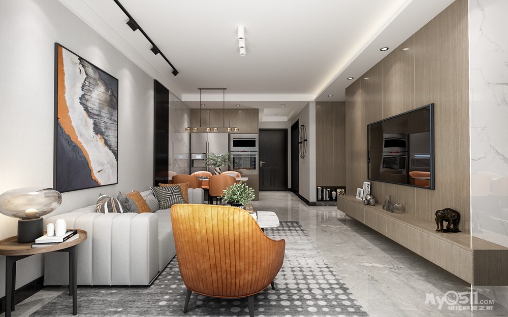 首先将冰箱外置,内嵌于餐厅柜子里面,达到储物美观结合;