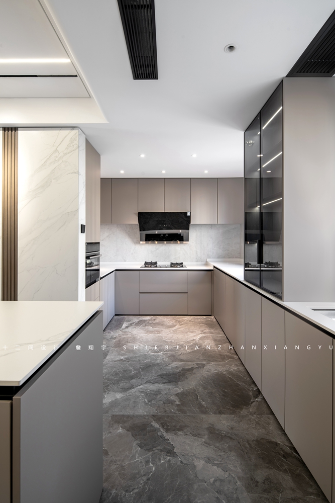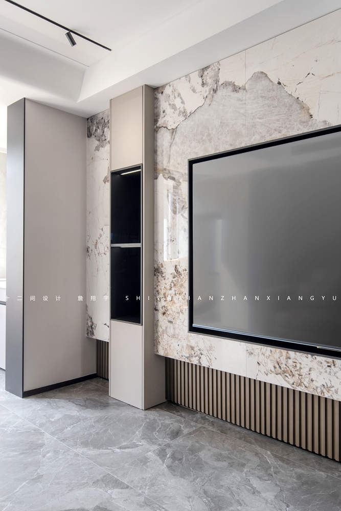 ①墙面的岩板选择的是潘多拉岩板,岩板自然的肌理,呈现出视觉的立体感。