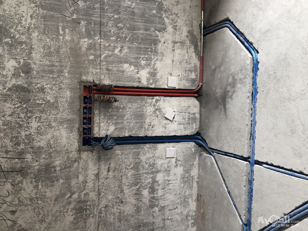 用材要求、2.5—6平米以上铜芯线、16mm以上线管。 布线要求:大部分电工师傅在电路布线中,没有考虑将强电与弱电,开关、空调插座与电器插座分开走线。所以开槽也节省了大批工序。强电与弱电的要求布线在最底限度下相隔30厘米,空调插座专用6平米以上的电线分组,电器插座专用4平米分组,开关2.5平米以上专用分组。空调线组距地面2米以上走线。电器线组地面走线,开关及照明灯线组墙顶面走线。开关插座底合安装时必须水平垂直,这样使后面的面板安装会更平整。厨房的开关插座须根据厨柜设计的使用功能来布置安装。所有电线路布置好之后,施工负责人记好线路的布置及排放尺寸,这样方便后期各类家居饰品安装。
