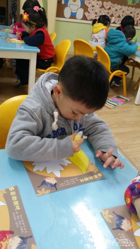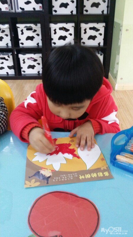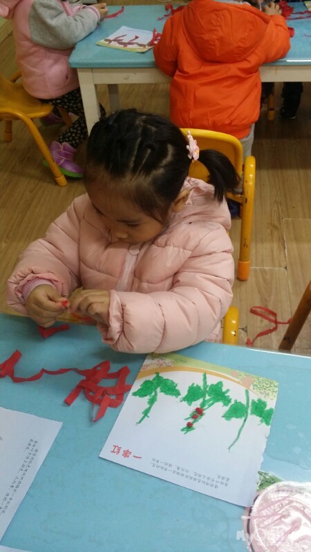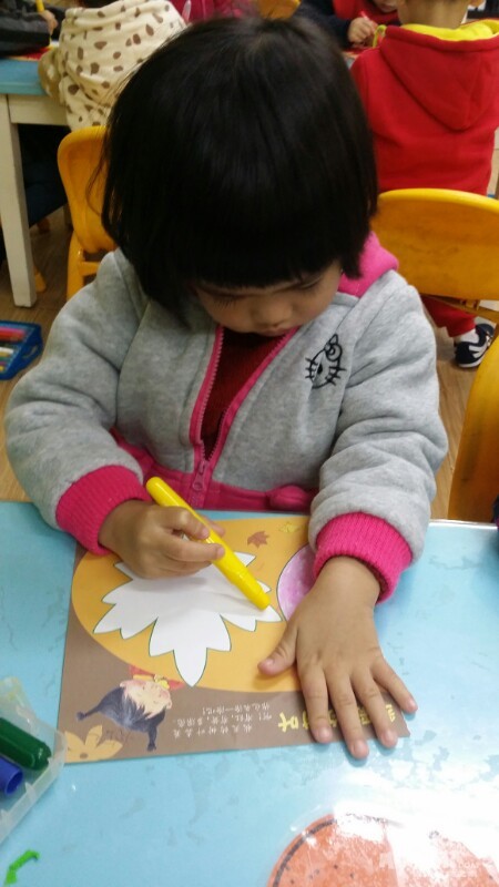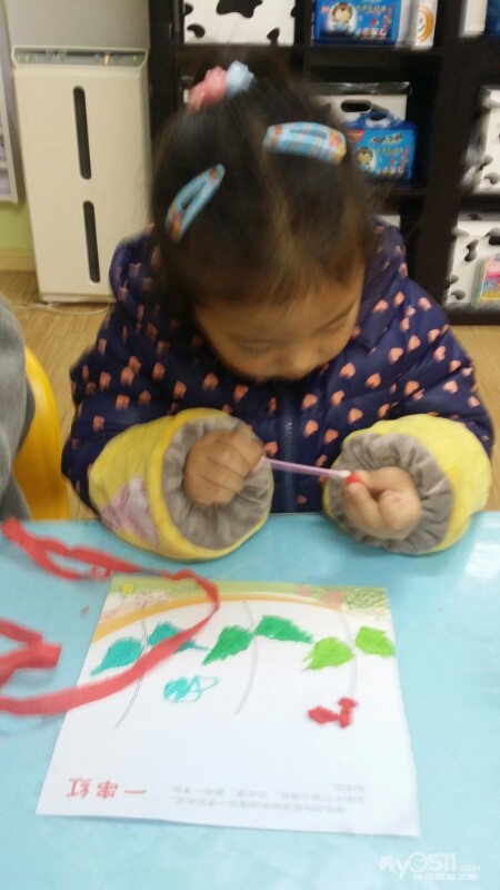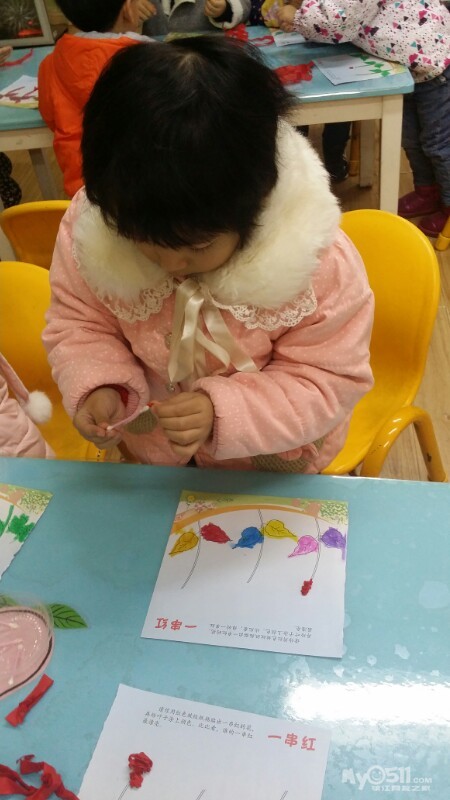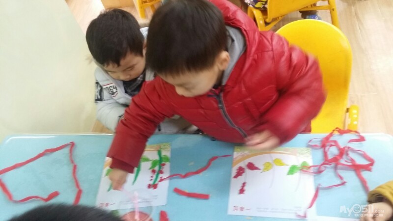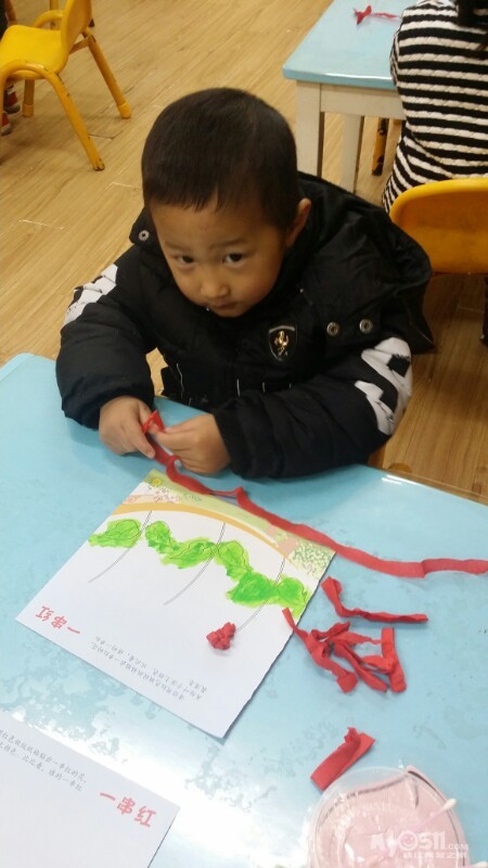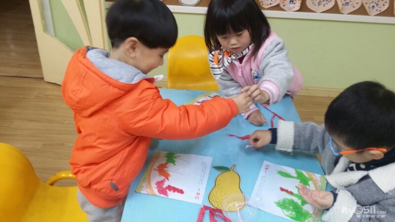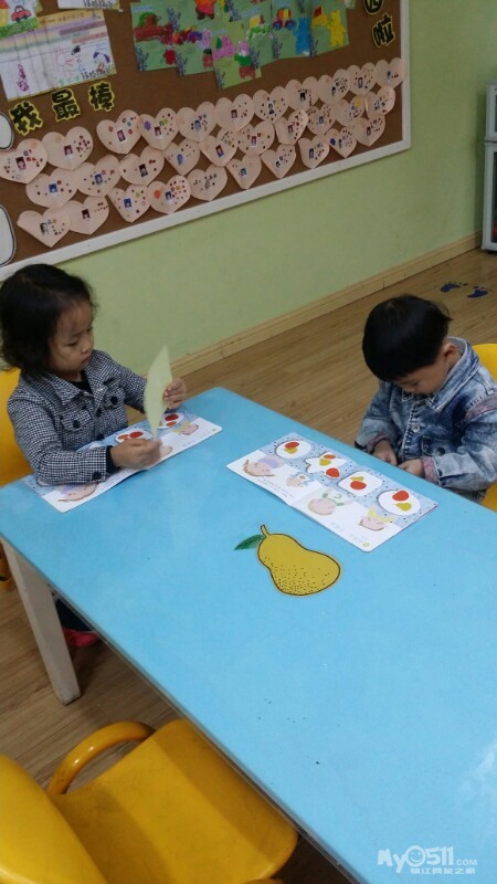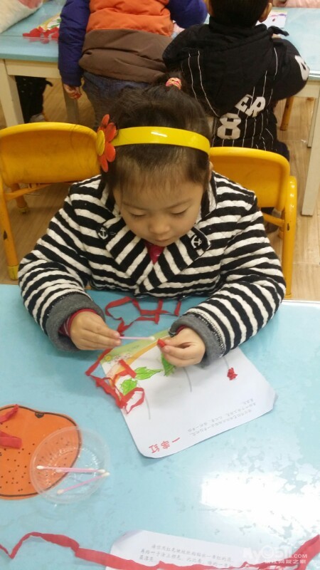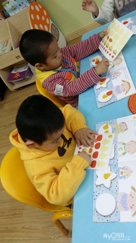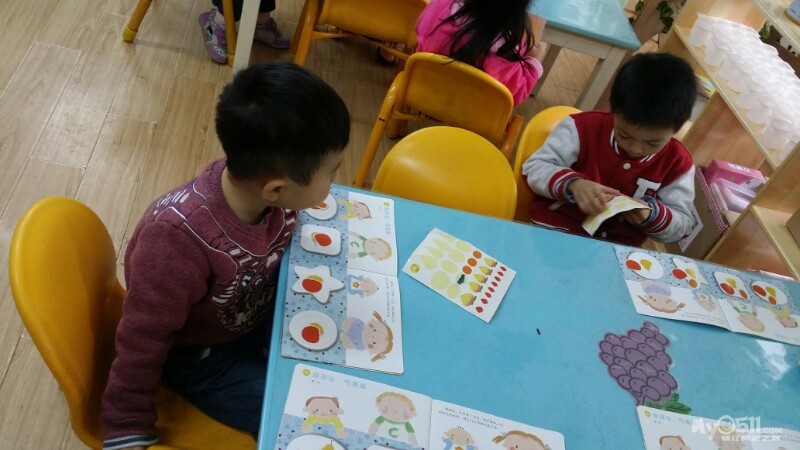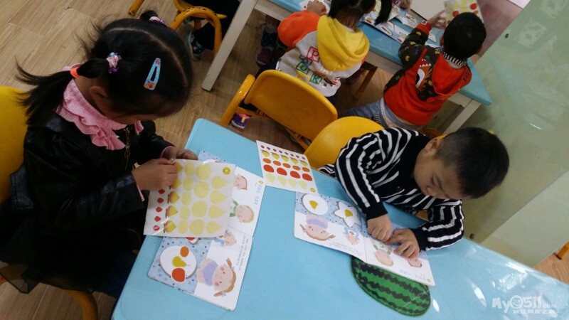 东方宝宝书上的小操作~分水果。宝贝们做的很认真,很专注,赞一个