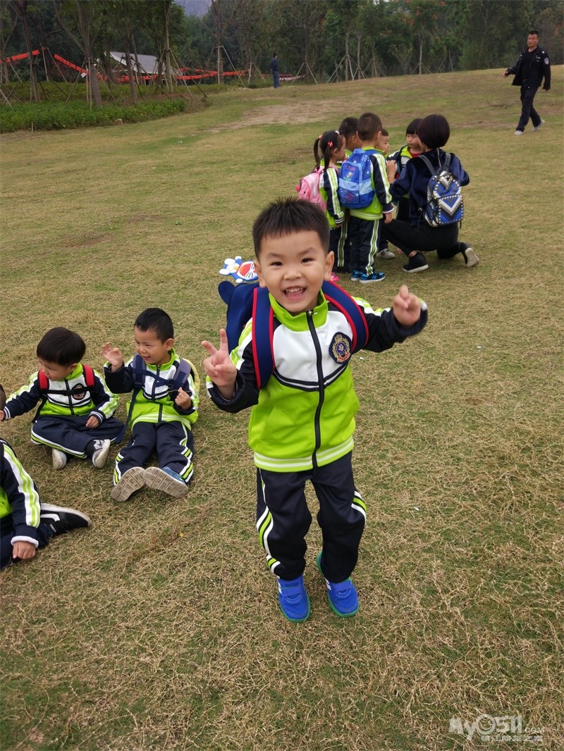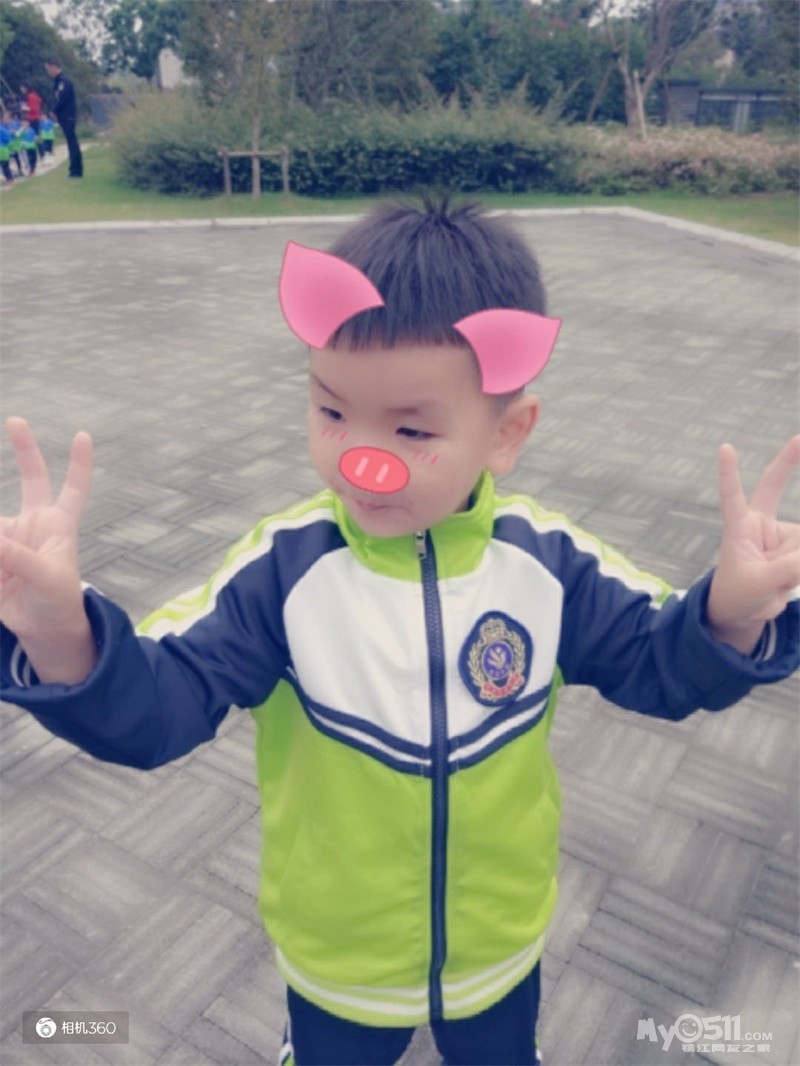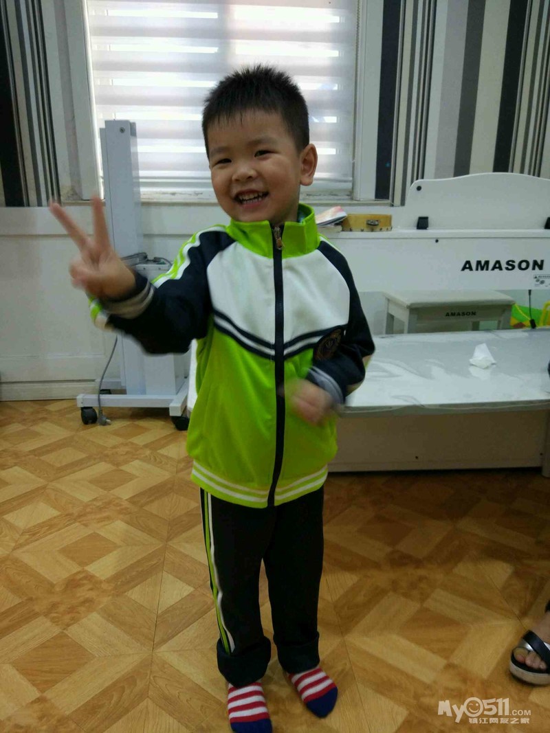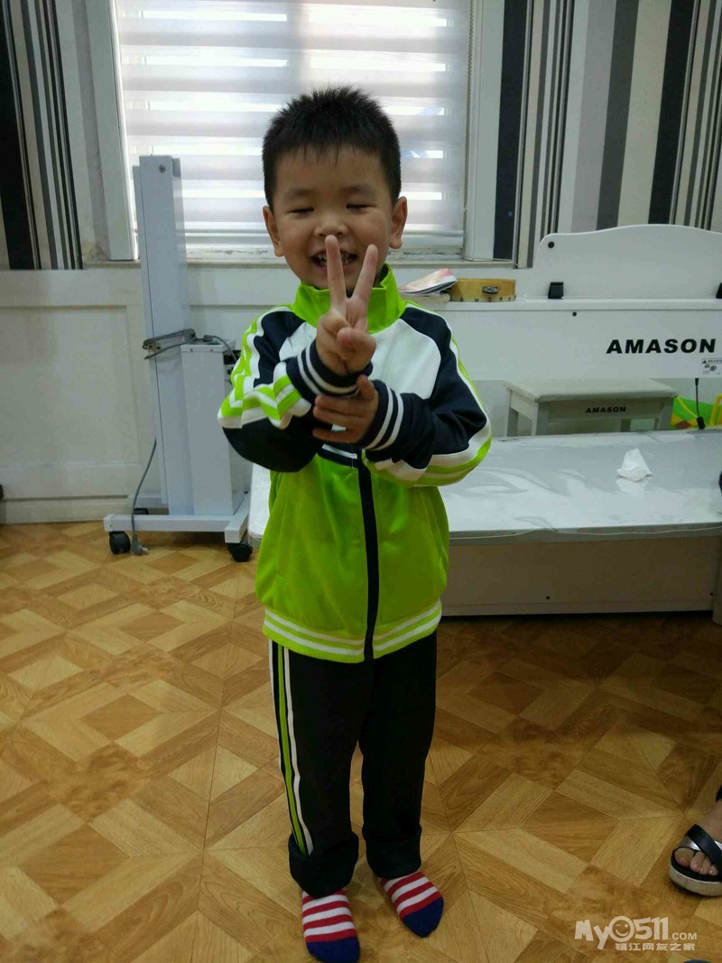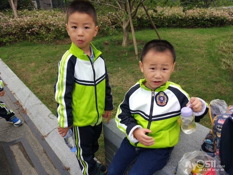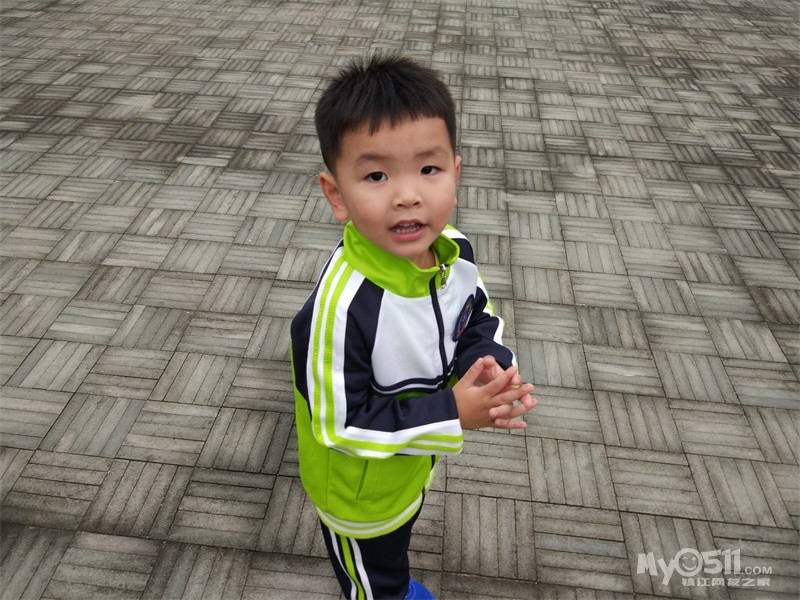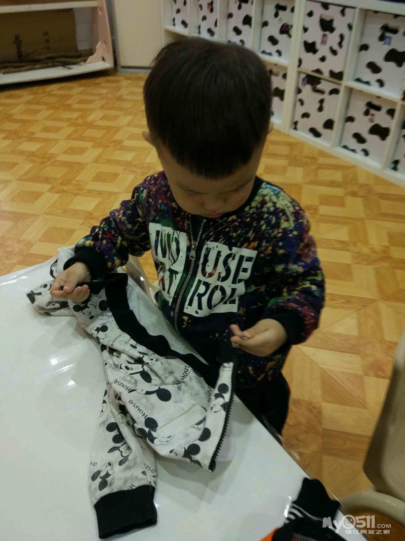 这是我们班的园服,王高泽穿的120的效果,裤腿卷起来了两折,大概10厘米