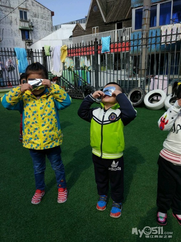 今天孩子们学了儿歌《绿色的世界》,班上没有绿色,不过用银色的眼镜去看世界了,孩子们也很开心