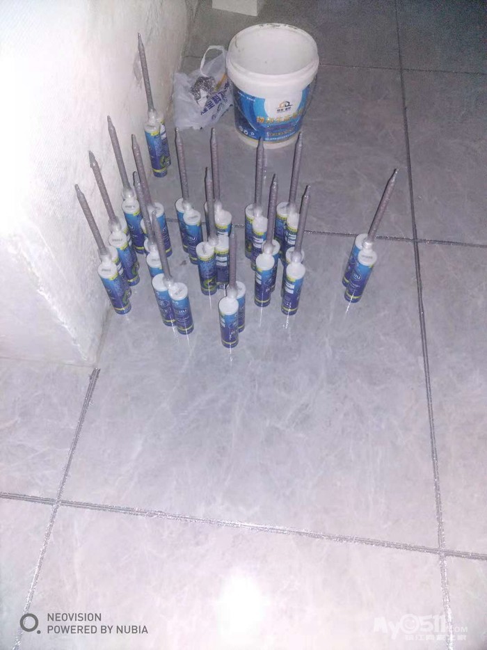 今天下班又去了下,想看一下美缝进度,打开门之后发现已经缝已经全喷好了真是神速啊,缝旁多余的胶还未清除,这个可能要等到明天胶干了来再做才能做。