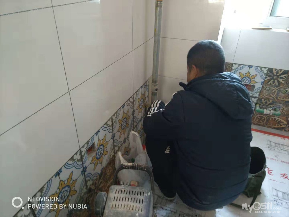 11月14日中午去的,因为约好了做美缝的,到了以后发现阳台上的窗户只封了一半,老公又打了电话催他,做美缝的是两人年轻的小师傅,到了之后就开始麻利的工作了,他们对瓦工的贴工赞不绝口,说贴得很好,让他们做起来很省心。