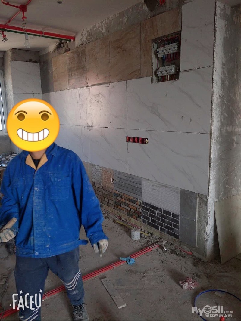 之前厨房选的是小白砖,因为后期卫生打扫问题,放弃了,换了爵士白的墙砖,果然没选错,真的特大气,效果棒棒哒,师傅入镜了,马赛克