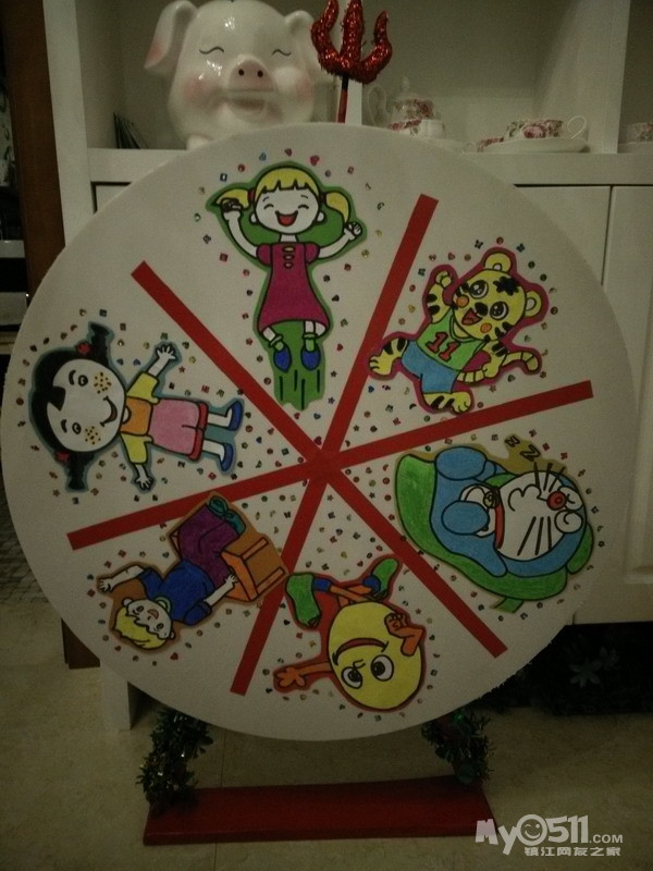 2、即将完工时候,她找出了我美工箱子里的两片贴纸,很仔细的在贴,我走过去一看,她给巧虎围了一圈,我说为什么要这样啊?她说妈妈天气多冷啊,巧虎还穿短袖,要加衣服,我没办法,就给他弄个房子吧,这样他暖和点。想法多合实际而且创造指数很高啊,我立马大大表扬了她,并且鼓励她继续,在她的灵感下,我们一同完成了最后的美化;3、在最后加罗盘指针的时候我在家翻箱倒柜,找不到个像样的东西,这时候她不声不响的跑到自己的玩具房,拿出了很多自己的魔仙棒,包括她心爱的五个巴拉拉魔仙棒,大方的给我说,妈妈这个行吧?我拥抱她,夸她不小气,想办法,是妈妈的得力小助手,最后选择了这根去常州恐龙园买的魔棒来充当一下吧。