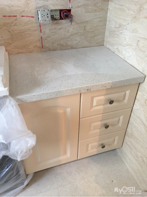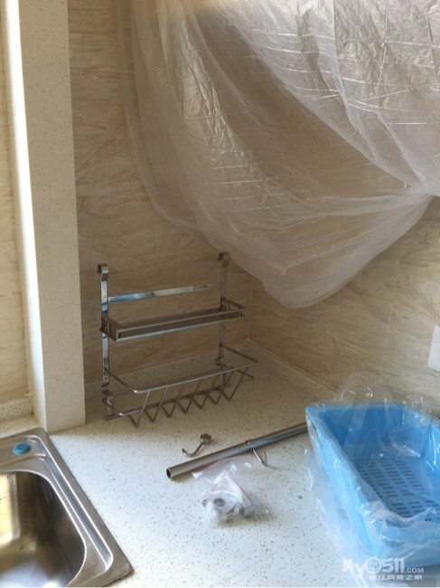那根煤气管道包好了效果还蛮好的,就是装台面的时候在家里切割的,全是粉尘,受不了后来在楼下等工人做完了才上去的