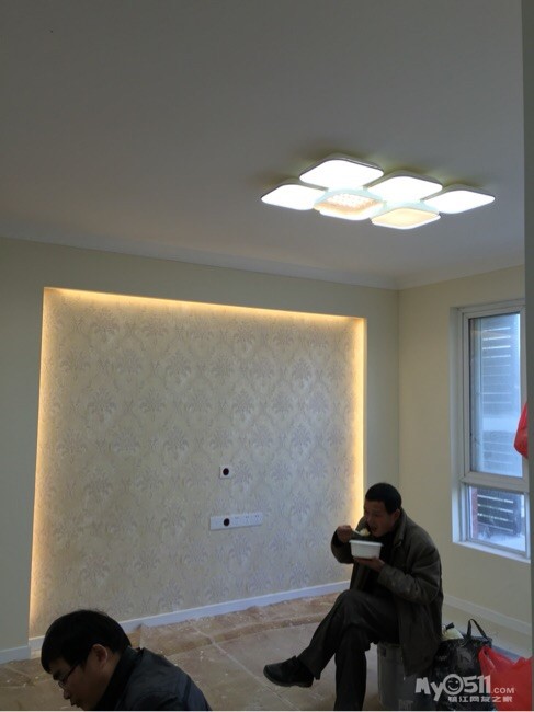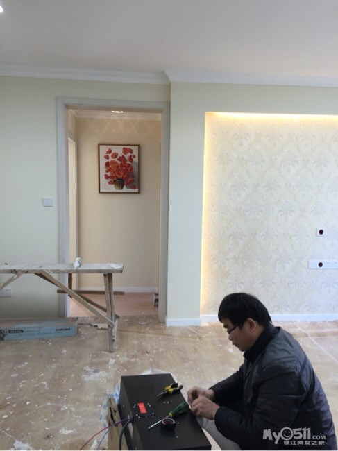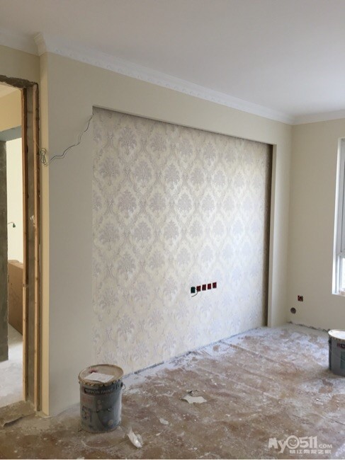 啊?我家就电视背景墙贴墙纸唉,韩总说油漆工结束就好刷基膜了蛮。