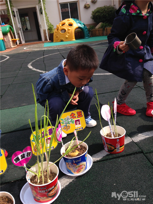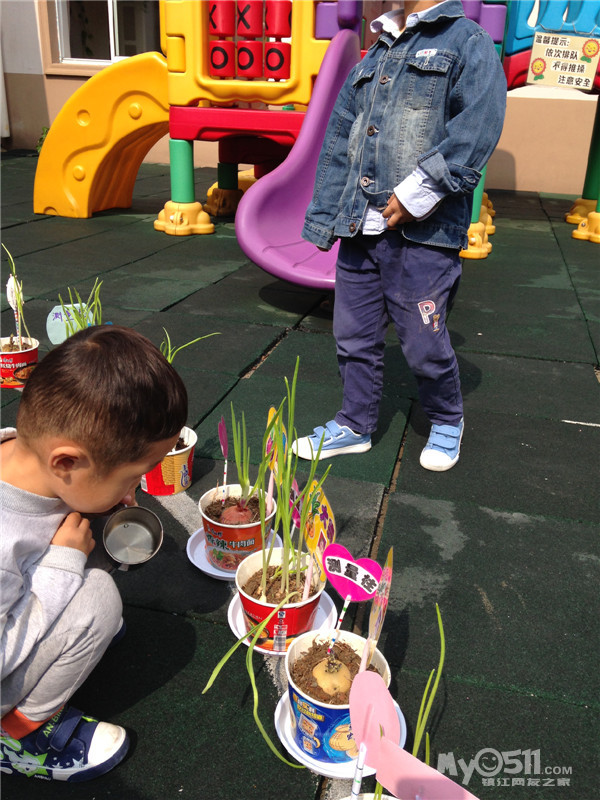 下课后,太阳出来了,赶紧组织宝宝们把自己的小苗苗端出来晒晒太阳喝喝水吧。哎呦,“谁的大蒜长的高?”“我的我的我的”。七嘴八舌,杨老师说大蒜好掐了,我说是的,马上晚上放学叫匣子们掐嘎扣。哎,对了,我来问问孩子们“小朋友,马上晚上放学把长高的大蒜掐回家吃,你们说怎么吃呢?”钟梓涵第一个说“老师,可以下面条”!哈哈,看来小钟宝宝很有生活经验哦!小钟宝宝今天穿了一件衣服,估计是新的,家长关照杨老师热的时候帮他脱一下,钟宝宝呢怕我不知道,在外面玩的时候不停的在我身边转来转去,一边转还一边抖嚯他的衣服,显示里面的小毛衣背心。我乐了“我知道呢,热的时候帮你脱衣服,是吧”小钟宝宝赶紧点点头,跑了。敢情就等着我这句话似的。
