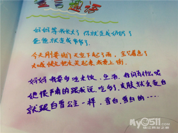 看着“袁老师”干净利落的处理纠纷,看着小朋友还都服气,我忍不住感叹,怪不得不是人人都能当领导的呢,瞧“袁老师”,人家那是天生就有领导才能的,袁爸袁妈好好培养哦!但有一条,先把“袁老师”普通话教教好,否则,她那满口的镇江话顶多也就在小镇江混混!