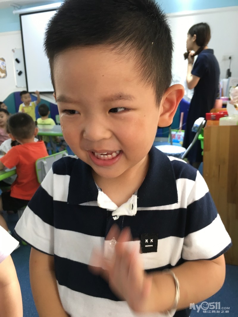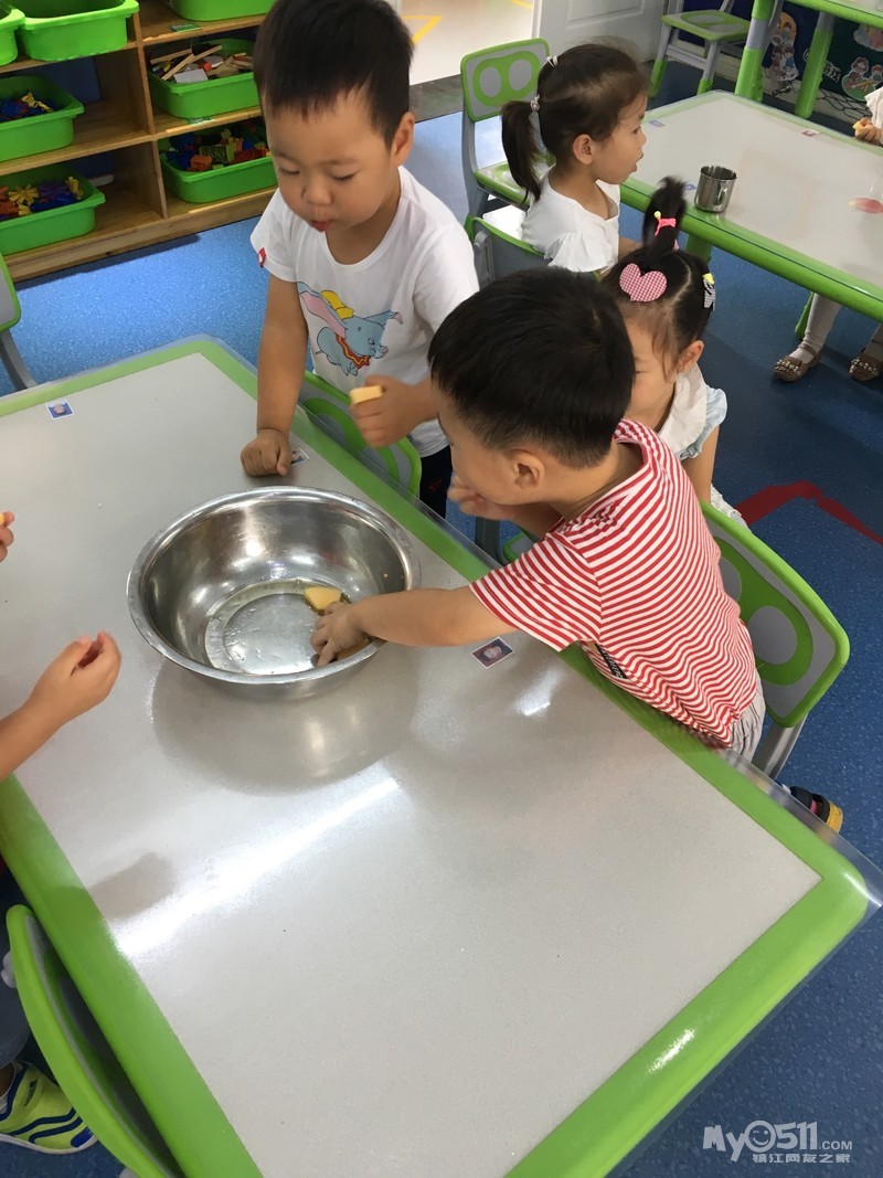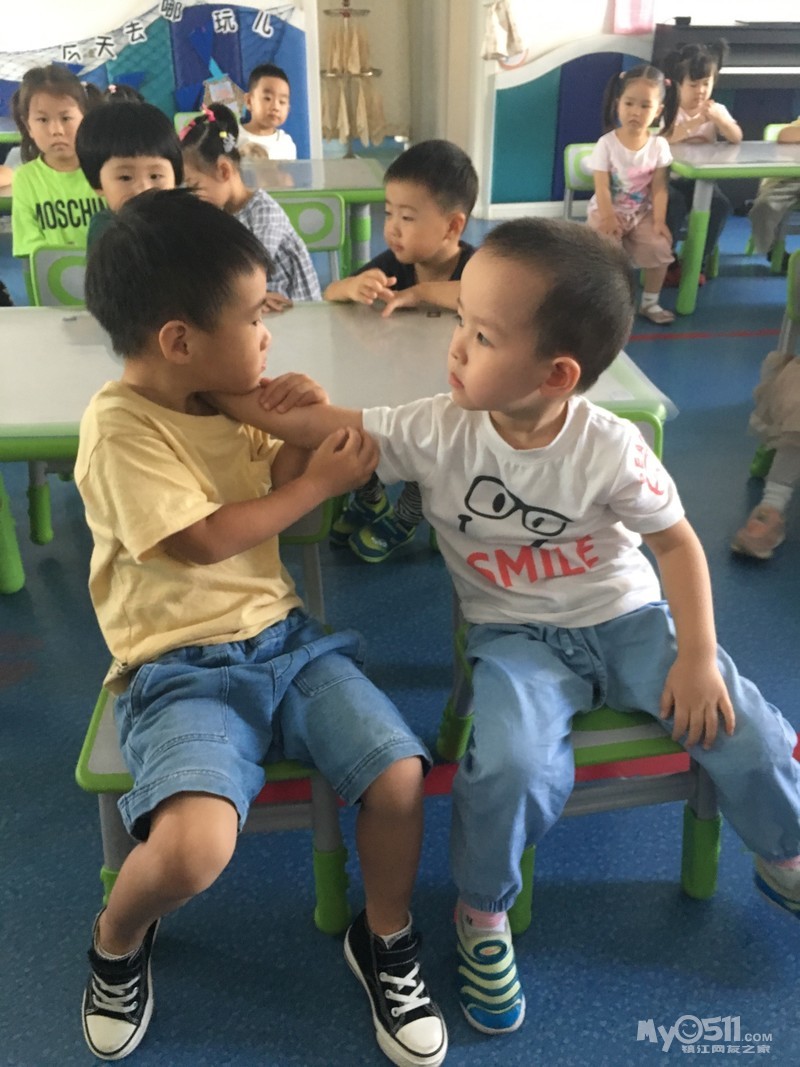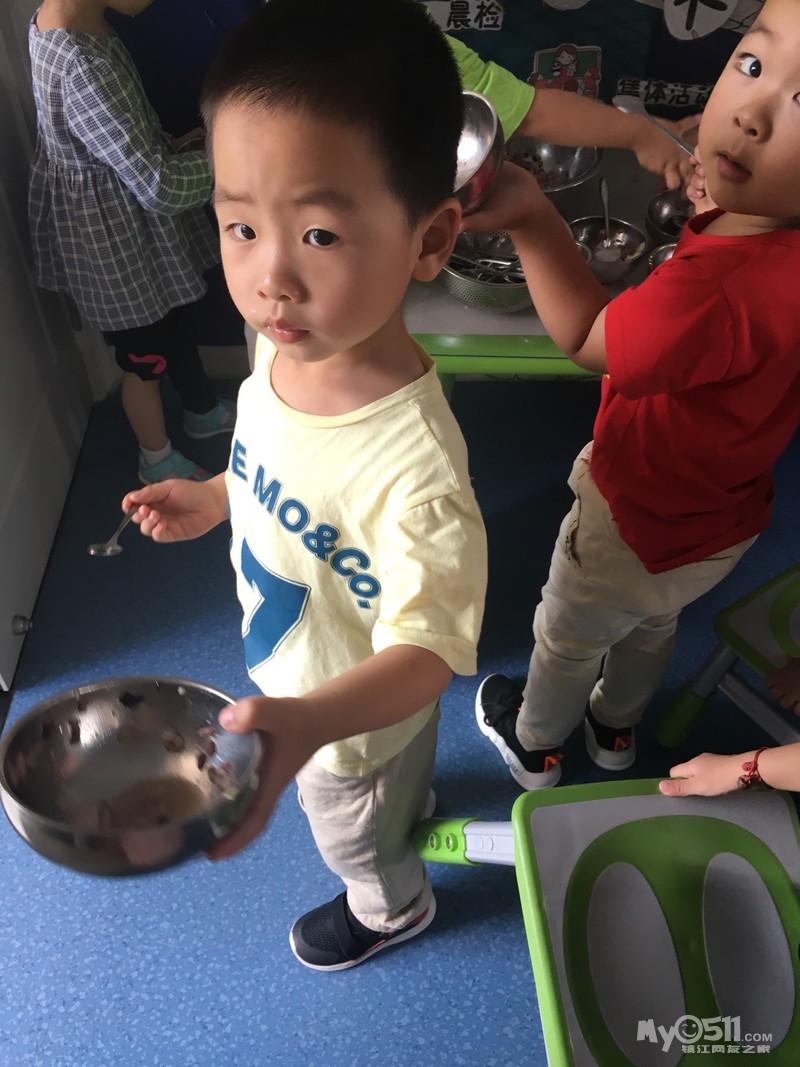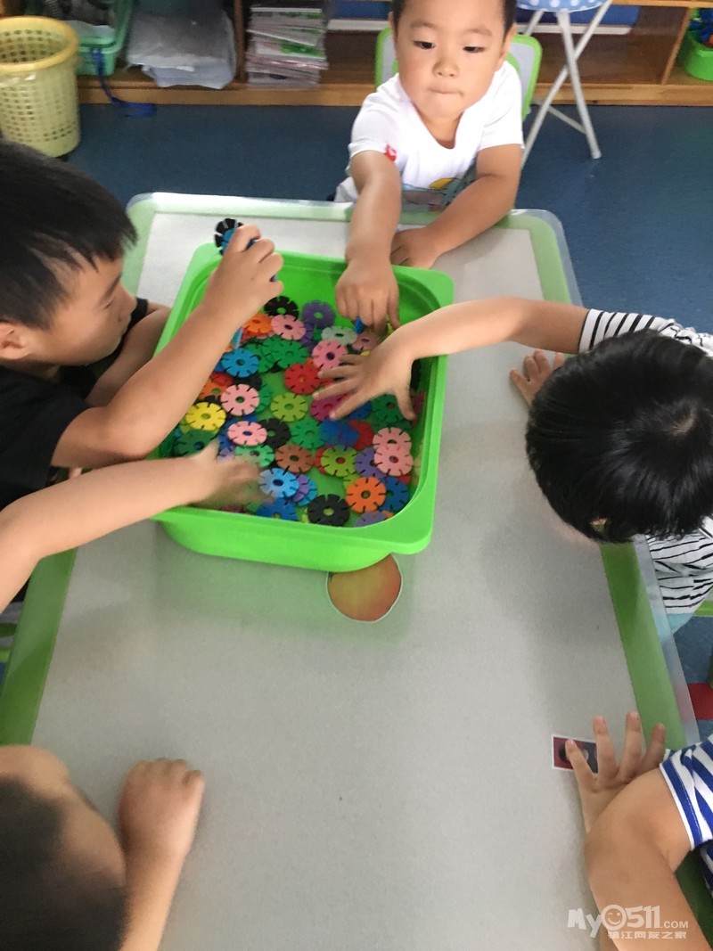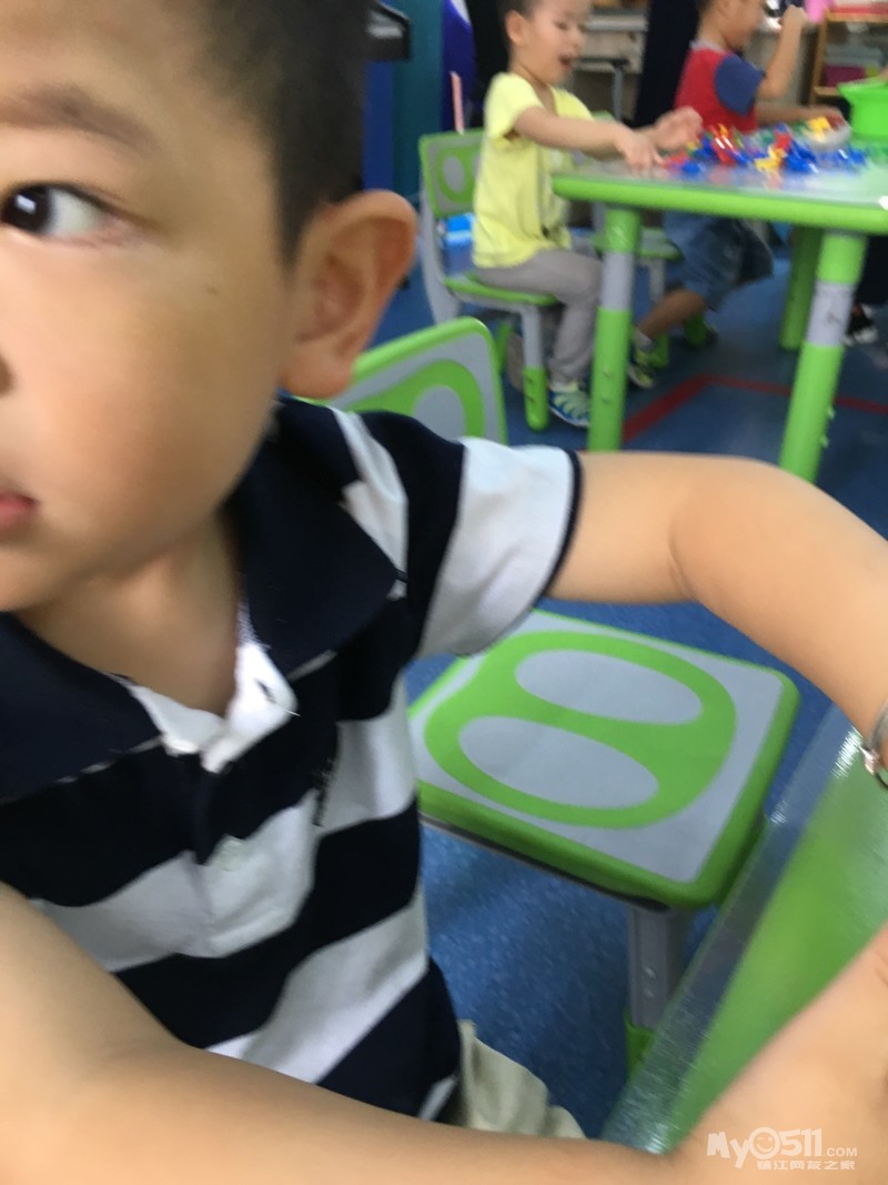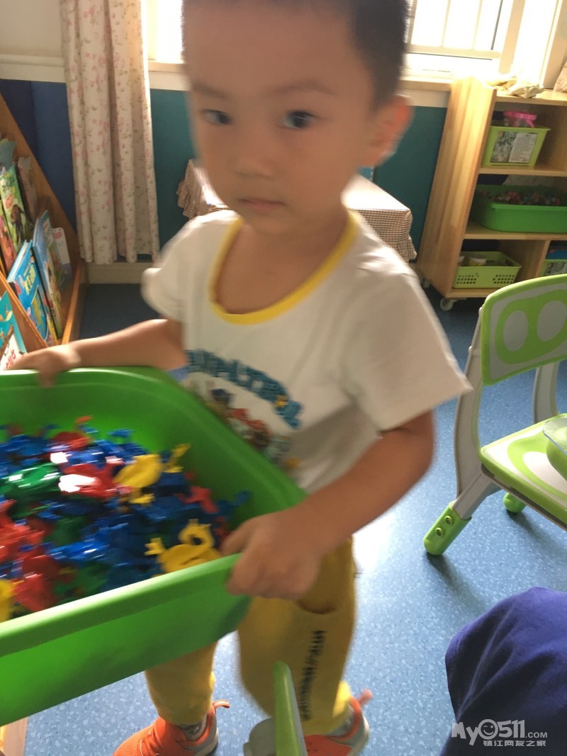 除了刚开始玩几个人玩了玩“大眼睛”后,之后就没有更新的创意了。没有更新的创意也就算了,安静的乖乖的玩自己的也成。得, 才不呢,可能是宝宝们在一起熟悉了,会疯了。橘子组的积木后来就像照片上拍的,每个人都是把手在里面乱打乱捅乱乱敲,发出非常刺耳的声音,因为大家都抢着在里面撸来撸去,所以他们的盆子被打翻在地好几次,然后再一堆儿到地下去捡。瞧着他们的疯狂样, 尽管我们两个老师都在试图平息他们的狂热,但是收效甚微!要说这一组怎么这么活跃呢,盖因有两位带头,一位刘沐曦一位刘柏江,两位刘家的哥们兄弟联手打天下,那几个正好跟在后面干轰轰,其乐无穷! 要说刘大哥沐曦(个子高,资格老,年龄不清楚)是绝对关心他的刘小弟柏江的,早上张煜卿和他是前后脚进门。张宝宝呢老老实实就坐在位子上了,他呢进门是兜兜圈,发现兄弟没来呢呢。问“老师,刘柏江怎么还没来?”我就回答“我哪知道呢,下次你在家走打个电话给他”。拿积木时了,刘宝宝张宝宝都想去端,我们就问你们谁先来的,张宝宝不吱声,刘宝宝滑头呢“我们一块来的”。我又问“谁先坐下来的?”张宝宝还是不吱声,刘宝宝说“我们一起坐下来的”。嘿嘿,明明是张宝宝先坐下来的,但是确实是刘宝宝先一步进教室的。得得得,本着保护刘宝宝的机智这一原则,我也就看破不说破“好吧,你们一起来的那就刘沐曦你负责拿积木,张煜卿你负责收积木,懂了吗?”