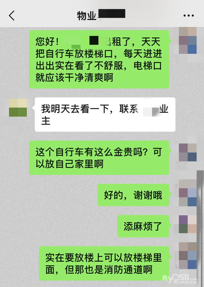 其次是他家竟然在电梯口放了一辆自行车,天天进出,我看了实在不舒服,骨鲠在喉。