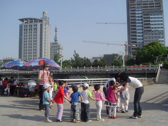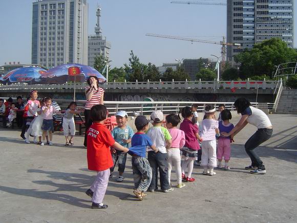 今天我们京岘幼儿园的宝宝们来到了 长江路 春江朝广场和朗朗外教一起放飞风筝,放飞梦想……