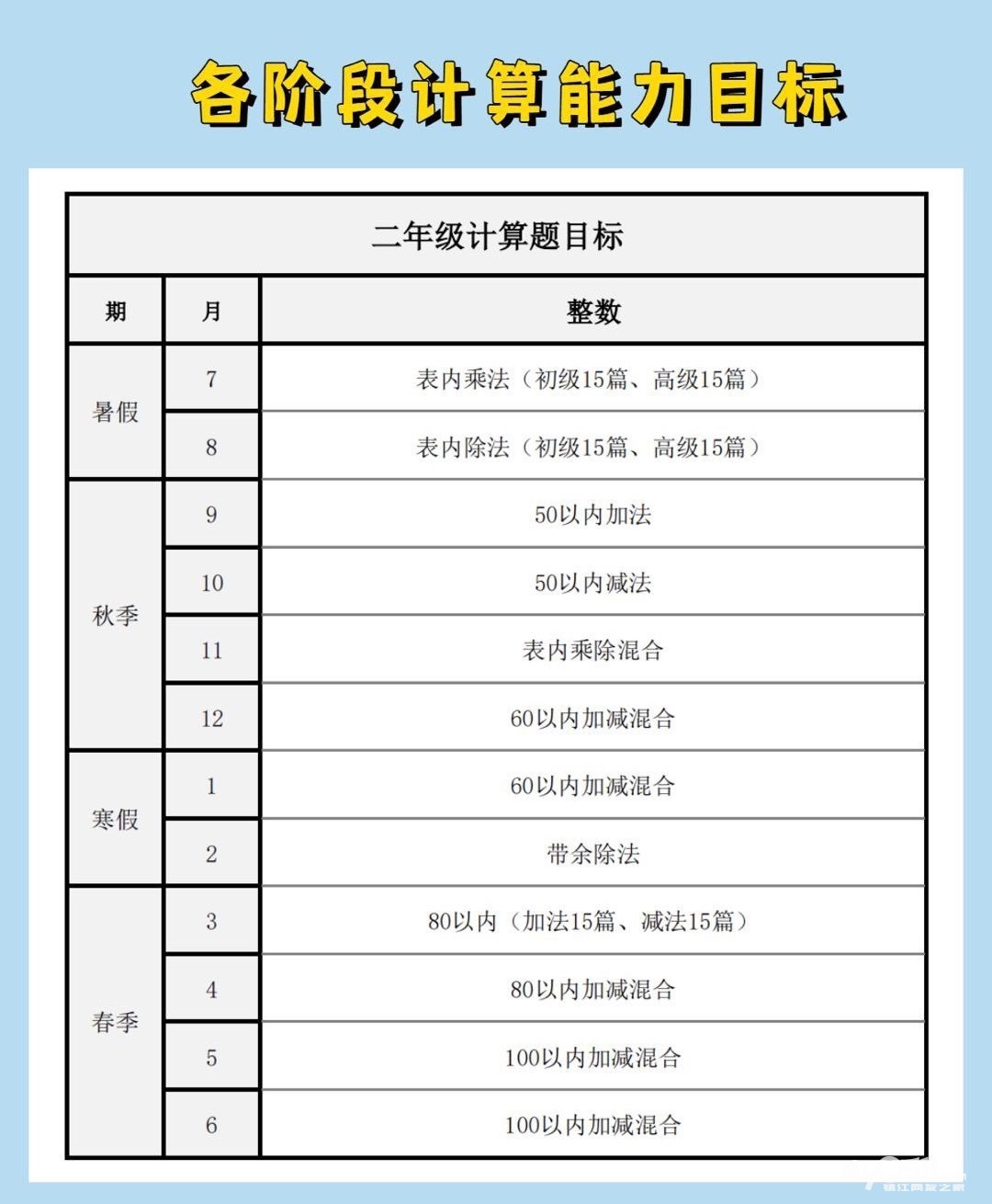 小学计算能力培养规划的一点建议