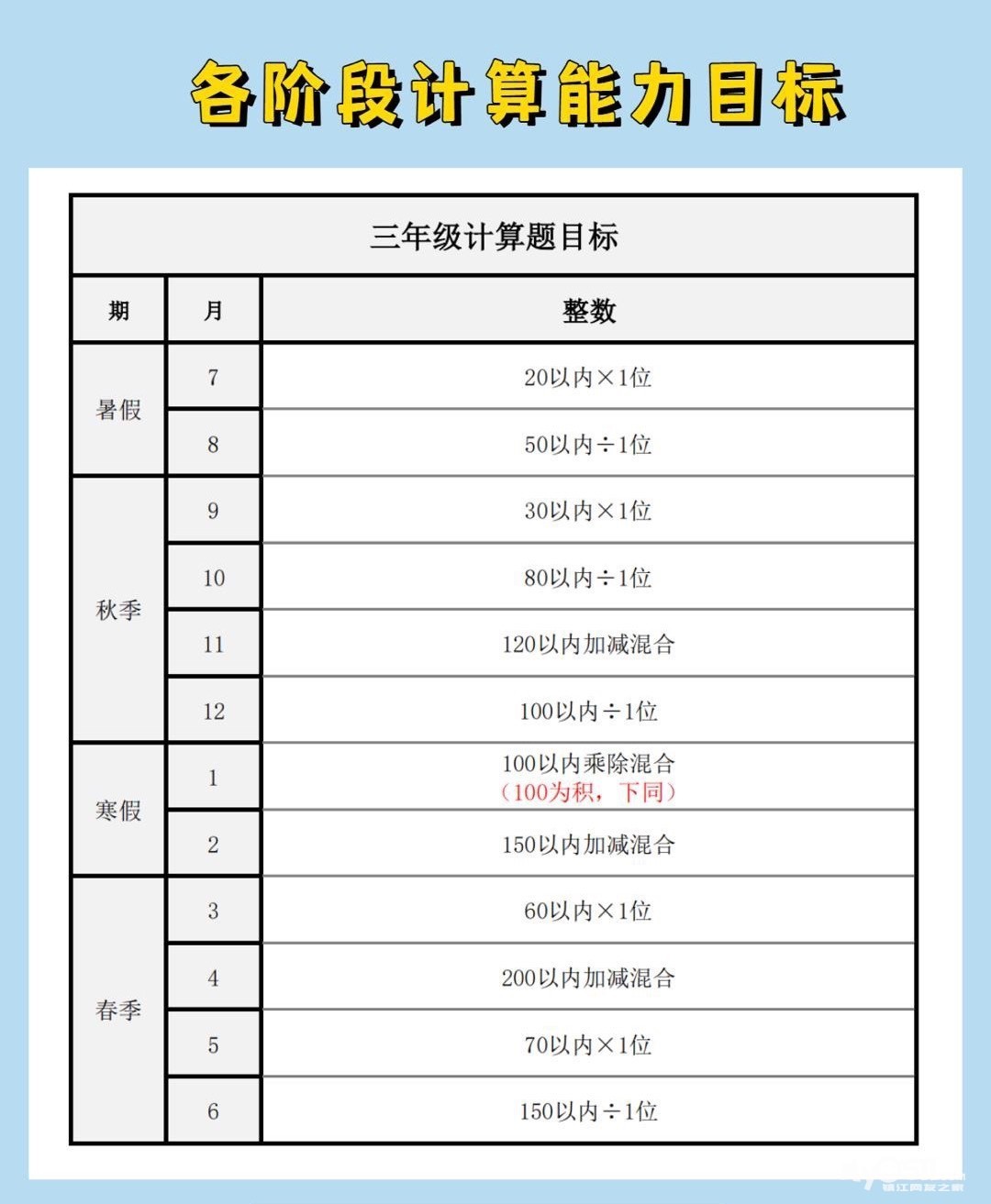 » 小学计算能力培养规划的一点建议