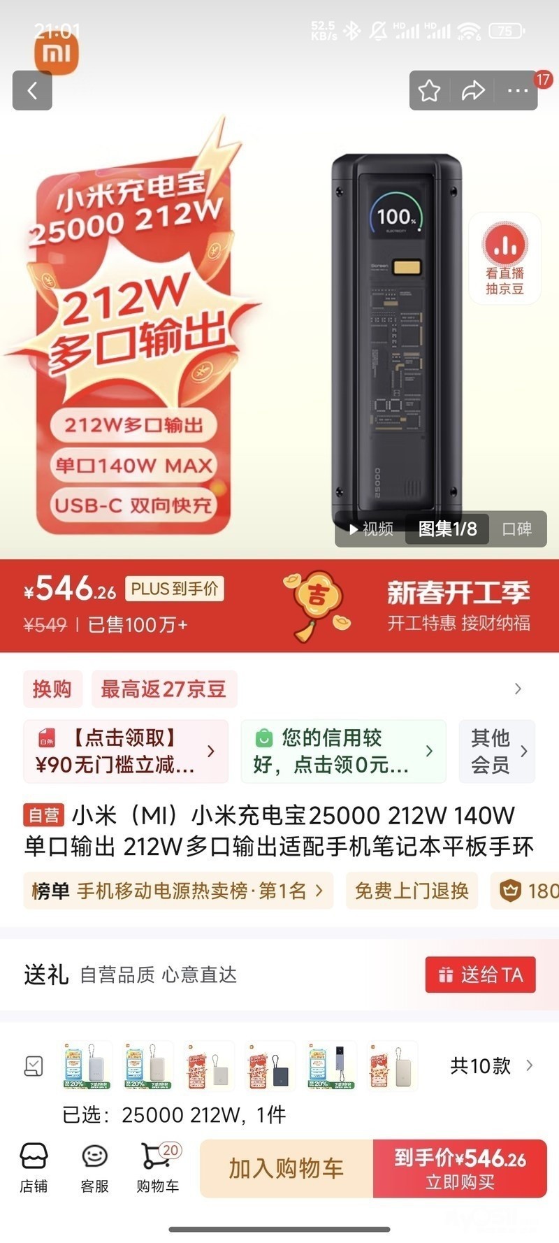 » 转个小米25000毫安212w充电宝